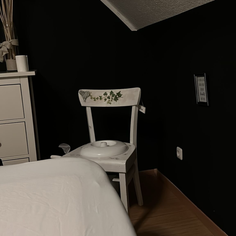 Und jetzt kommt der Teil mit dem Galgenhumor: Zum Glück hatte ich zu meinem 50. Geburtstag als Scherzgeschenk einen Klostuhl bekommen!