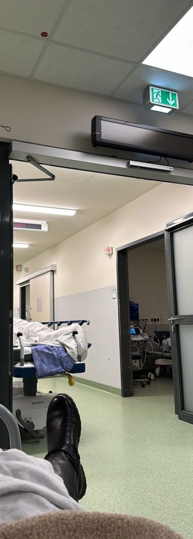 Der Arzt hat alle Kliniken mit Urologie in der Nähe abtelefoniert, aber leider gab es keine Möglichkeit, mich zu verlegen. Keiner hatte Platz. Also blieb ich erstmal hier, Schmerzmittel rein, Nacht überstehen. Am nächsten Morgen sollte es in eine Klinik mit einer urologischen Abteilung gehen, die 1,5 Stunden Fahrt entfernt war, wo ich ambulant eine „DJ-Schiene“ bekommen sollte.